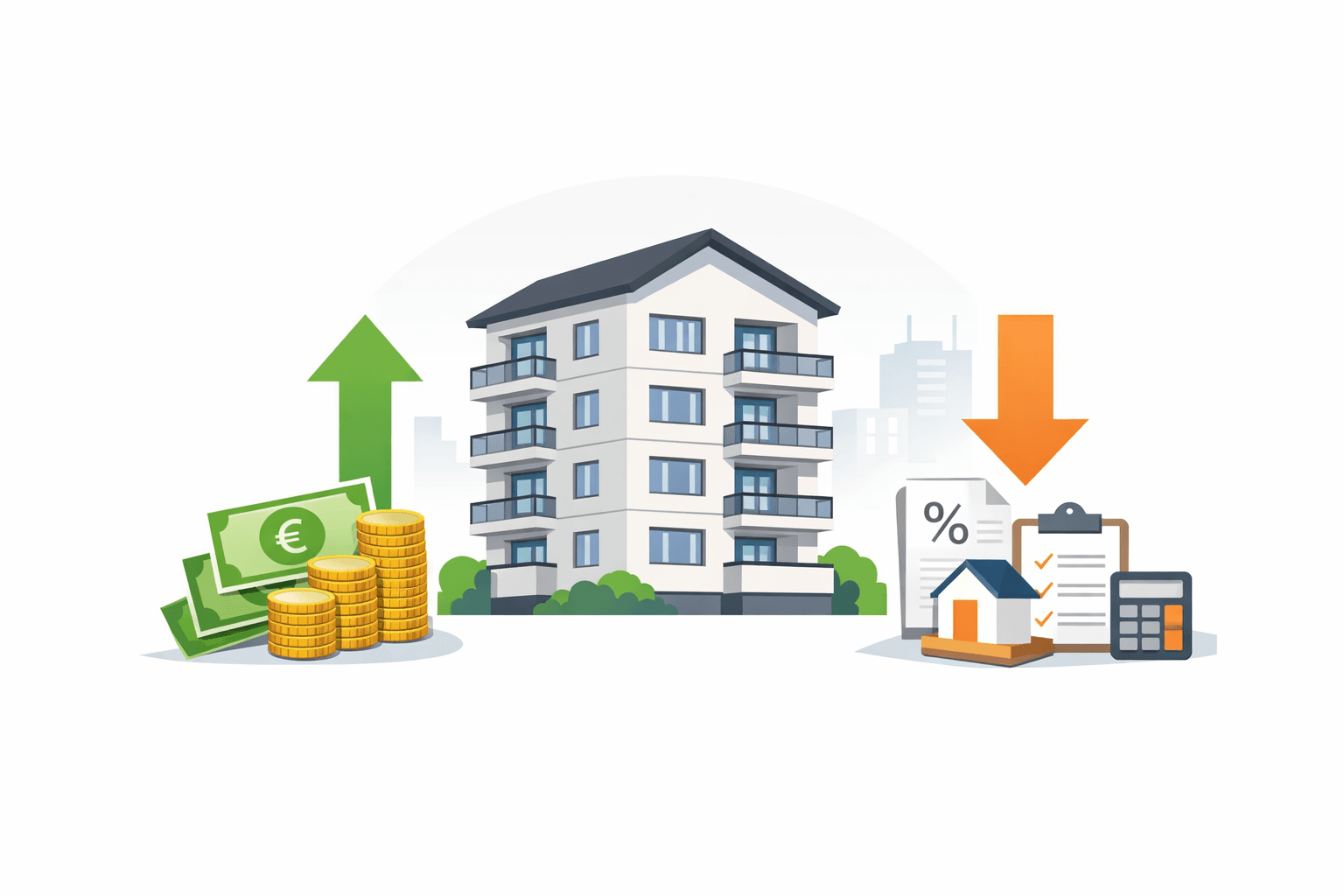 Variiere Kaufpreis, Miete oder Eigenkapital und sieh alle Kennzahlen im direkten Vergleich.