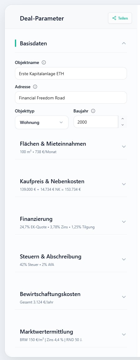 Analysiere deinen nächsten Immobilien-Deal in wenigen Minuten – ohne Excel, ohne Kreditkarte.
